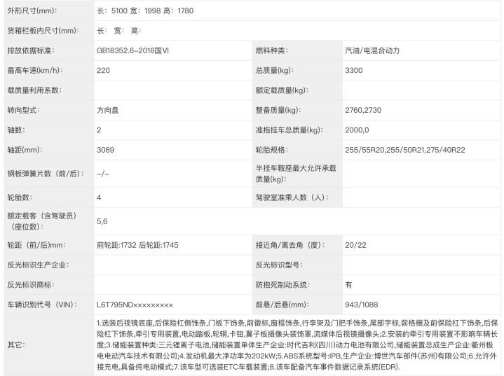 电池组方面,极氪8X使用宁德时代的三元锂电池组,容量有55.1和70度电两种,WLTC续航里程可达到256、328公里,亏电油耗不到6.5升。一个细节是,极氪8X的车身重量为2.66-2.82吨,总质量3.25-3.37吨,所以它的整个动力需求还是非常大。