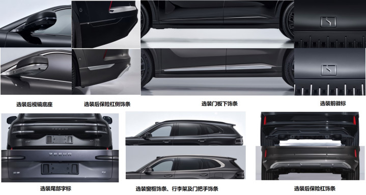 细节上,极氪8X采用车身同色的轮眉,底部有哑光银色的侧裙饰条,同时车顶行李架、车窗框的银色饰条都是哑光银色。并且新车依然采用的是传统是门把手,估计里面是微动开关。